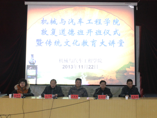 本站讯 11月22日下午,我校机械与汽车工程学院在晋安路校区报告厅举行“敦复道德班开班仪式暨传统文化教育大讲堂活动”。敦复书院院长王英杰、副校长万是明出席开班仪式,我校近500名师生参加了本次活动。