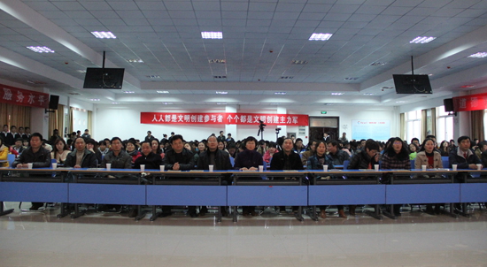 本站讯 11月28日下午,由党委宣传部主办,人文学院和土木建筑工程学院联合承办的道德大讲堂在东京大道校区土木楼六楼报告厅举行,此次道德大讲堂的主题是仁、义、礼、智、信。校党委副书记储建新出席,组织部、宣传部负责人,各学院党总支书记及院部师生400余人参加了活动。