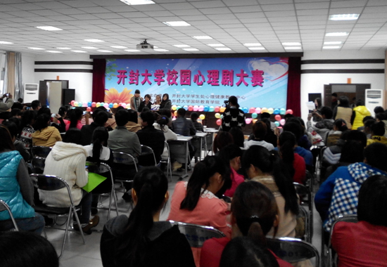 本站讯 10月31日,由学生处心理健康教育中心主办、国际教育学院承办的2013年校园心理剧大赛在国际教育学院五楼报告厅举行。学生处负责人,心理健康教育中心老师、各院部心理健康教育负责老师、各院部学生代表200余人观看此次比赛。