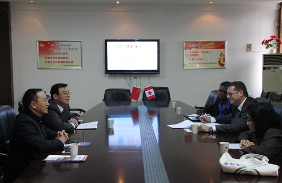 本站讯 11月7日下午,加拿大麦瑞·维多伦学院院长Sylvain Mandeville先生、项目负责人Freda Thelusma女士、校方代表Neng Xiang Shuai女士到我校访问,我校校长拜五四及国际教育学院相关负责人在晋安路校区行政楼二楼会议室与代表团成员进行了会谈。