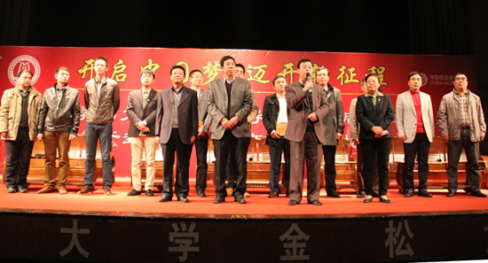 本站讯 11月8日下午,我校在金松大礼堂举行“第九届就业指导服务月”启动仪式。校长拜五四、副校长万是明、校纪委书记范金梅、副校长耿广利及2014届毕业生共同参加了启动仪式。11位往届优秀校友参加启动仪式和校友论坛,启动仪式由副校长万是明主持。