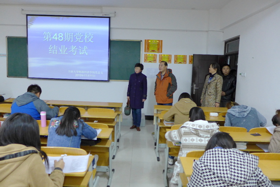 本站讯 11月11日下午,我校党校各分党校分别组织了第48期入党积极分子培训班结业考试。校党委副书记、党校校长储建新到部分院部分党校检查了此项工作。