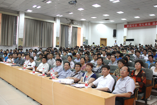 本站讯 6月18日下午5时,由校党委宣传部主办,机械与汽车工程学院党总支、继续教育学院党总支承办的道德讲堂活动在晋安路校区报告厅举行。开封市敦复书院院长王英杰出席活动,校党委宣传部、校文明办、各学院党总支书记、副书记以及承办院部师生代表等参加了本次活动。