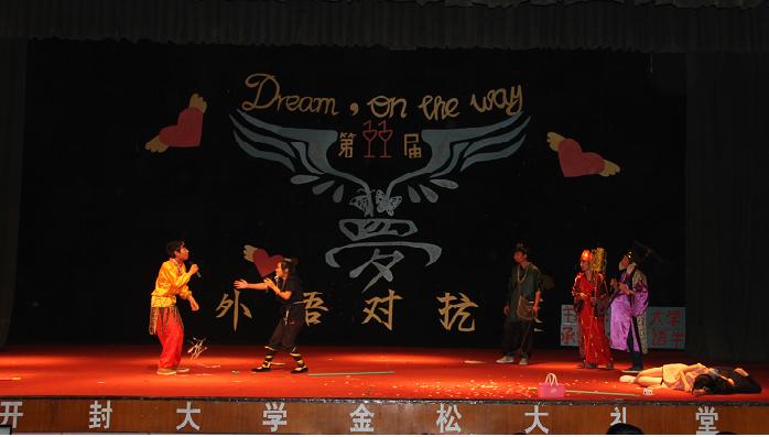 参加本次大赛的该院应用英语专业5个班级和应用日语专业3各班级,是该院之前通过预赛产生的。对抗赛决赛以班级为单位,通过演唱外语歌曲、班级外语演讲和外语话剧表演三个环节进行外语对抗。参加决赛班级的同学以流利的外语和精湛的表演赢得了评委老师的高度评价。