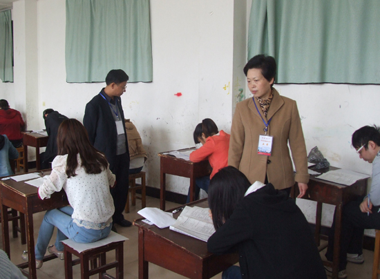 考场上,监考教师认真负责。考生精神状态良好,参加考试证件齐全。整个考试工作井然有序。