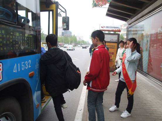 我校学生志愿者们身体力行,以改善交通面貌、传播文明礼仪、优化公共秩序为目的,为营造开封文明和谐的社会氛围贡献自己的力量,得到了乘客的赞扬和社会好评。