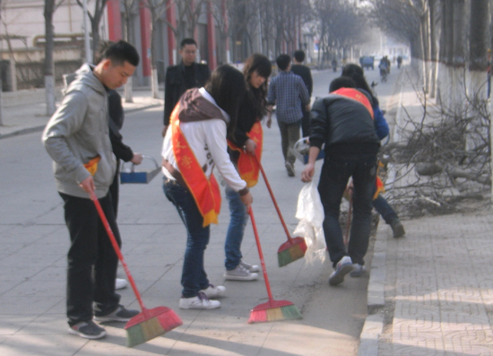 本站讯 我校青年志愿者积极响应市文明办的号召,于3月9日上午积极参加开封市“开封新区城乡环境整治帮扶”志愿服务活动,到康平家园开展义务劳动。