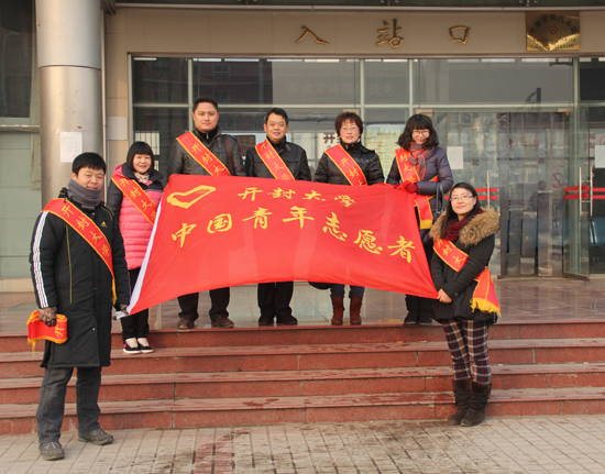 本站讯 我校积极响应市文明办号召,迅速开展“春运助民”志愿服务活动。1月26日一大早,校党委宣传部和校团委的全体同志来到金明汽车站,不畏严寒,主动放弃节假日休息时间,开展志愿服务活动。