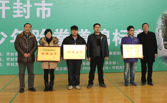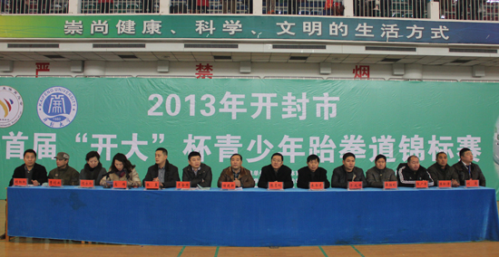 本站讯 1月12日上午,开封市首届“开大”杯青少年跆拳道锦标赛开幕式在我校体育馆举行。全市共有18个代表队、400余名运动员参加了本次比赛。比赛分中学组、小学组和幼儿组三个组进行。中国大学生体育协会跆拳道分会副主席、河南省跆拳道运动协会副主席、河南省学生体育总会跆拳道协会主席、开封市跆拳道协会主席、bat365在线官方网站党委副书记储建新,开封市体育局副局长张志刚,开封市民间组织管理局局长李金国,河南省跆拳道运动协会副秘书长高玮等领导出席了开幕式。开幕式由开封市跆拳道协会秘书长胡红权主持。