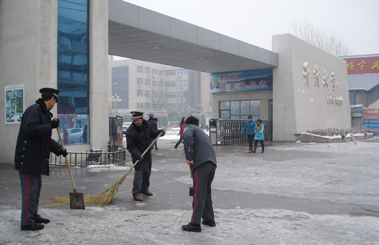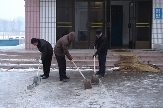 本站讯 12月14日一大早,我校教职工自发组织对校内积雪进行了清扫。由于对道路积雪及时进行了清理,方便了师生通行,确保了师生的安全和学校各项活动的正常开展。