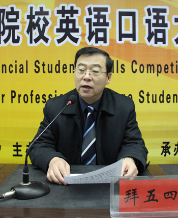 开幕式上,拜校长代表我校对各位专家及兄弟院校师生的到来表示热烈欢迎,并预祝大赛取得圆满成功。万院长代表大赛组委会对我校领导及相关部门提供的帮助和支持表示感谢,并希望各高职高专院校以此比赛为契机,进一步提高学生的英语实际应用能力和综合素质,使我省专科英语教学整体水平再上台阶。