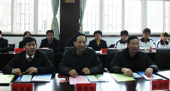 本站讯 12月19日,省教育厅“依法治校示范校”专项检查组一行3人,在组长中原工学院副院长董丞明的带领下莅临我校,就创建“河南省依法治校示范校”工作情况进行检查验收。我校校领导张新梅、拜五四、储建新、万是明、成芳,以及相关部门负责人参加了检查验收汇报会。汇报会由党委副书记储建新主持。