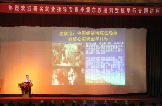 次日上午,全国就业指导知名专家李震东教授在我校金松大礼堂为我校师生做就业专题讲座。李教授的讲座深入浅出、旁征博引,让同学们对就业择业有了更为清晰的认识,收获良多,获益匪浅。