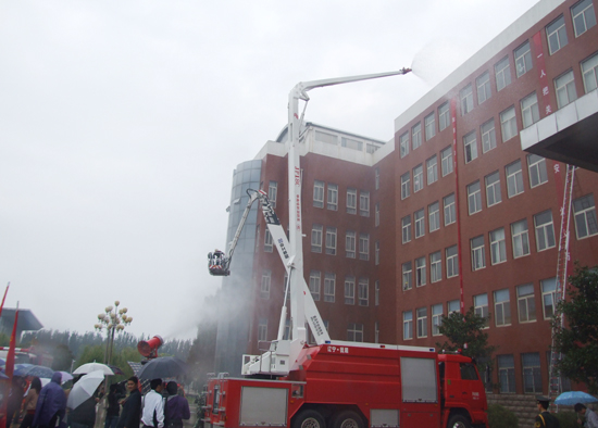 本站讯 11月3日上午,绵绵秋雨,在“119”消防日即将到来之际,开封市“119”消防日大型宣传活动启动仪式暨bat365在线官方网站全民体验式灭火和逃生自救演练活动在我校晋安路校区明德广场举行。开封市政法委书记蒋美兰、市政府副市长刘玉虎、市政协副主席王文娟、开封军分区副司令员侯敬民、市政府调研员侯潮、我校校长拜五四、市消防支队政委姚红卫,以及开封市相关单位负责人出席,开封市部分消防安全重点单位人员、河南大学、黄河水利学院和我校师生近3000人参加仪式。