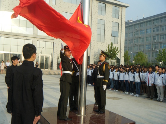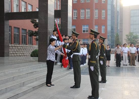 旗手分别从党委书记张新梅和校长拜五四手中迎过国旗,伴随着嘹亮的国歌声,鲜艳的五星红旗冉冉升起,全体师生行注目礼。在飘扬的五星红旗下,我校师生精神焕发,迎来了新的学期。