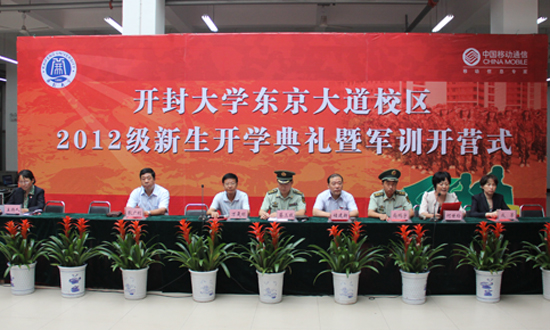 本站讯 九月的开封,秋高气爽。9月11日上午,我校先后在晋安路校区和东京大道校区隆重举行2012级新生开学典礼暨军训开营式。校领导张新梅、拜五四、储建新、万是明、范金梅、何世玲、耿广利、成芳、承训的驻汴部队领导以及我校相关处室及院部领导参加开营仪式。仪式由学生处处长陈岩主持。
