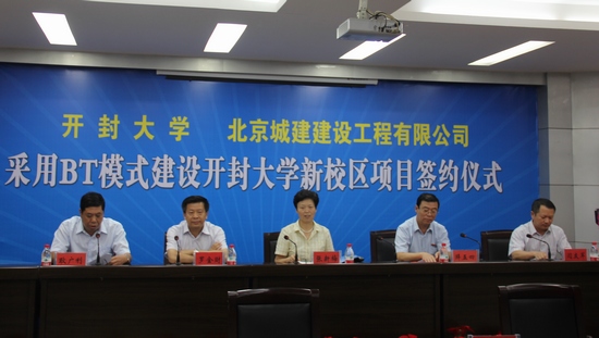 党委书记张新梅在致词中指出,bat365在线官方网站新校区建设工作从2009年启动以来,目前已初具规模。为进一步加快新校区建设速度,确保工程质量,经多方调研、论证,并报开封市委、市政府批准,我校决定与北京城建建设工程有限公司合作,采用BT模式进行建设。通过此次合作,必将进一步加快bat365在线官方网站新校区的建设,进一步提高工程质量,进一步改善学校的办学条件,学校将全力以赴、积极协调、通力配合,为工程建设创造良好的环境条件,确保建设项目的高质量、高效率实施。