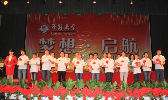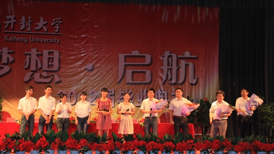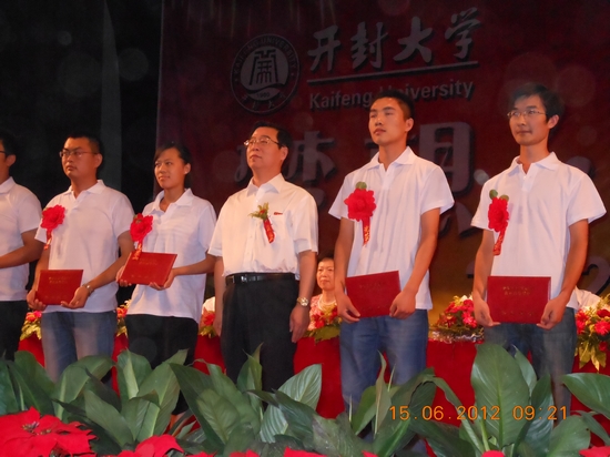 校长拜五四为2012届毕业生代表颁发毕业证书,并合影留念。