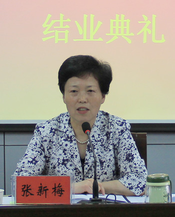 书记张新梅在结业典礼上作了重要讲话。她首先对大家圆满完成各项学习任务,取得了良好的学习效果,表示祝贺;对大家以往的积极工作,和对学校的发展做出的贡献,表示感谢;希望大家贯彻落实会议精神,应用到实际工作中,把我校党建工作做得更好。