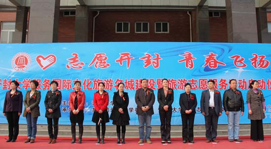 本站讯 3月29日下午,我校“旅游志愿服务”专项行动启动仪式在明德广场举行。团市委副书记陶毓敏、市旅游局副局长李红宁、市文物公园局机关党委副书记徐照旭、校党委副书记储建新、纪委书记范金梅、工会主席成芳及开封新区相关领导,我校相关部门负责人及各院党总支副书记、团总支书记出席了启动仪式。