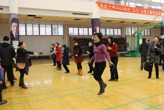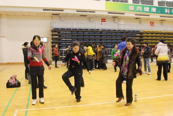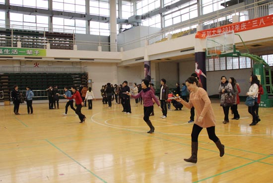 本站讯 3月8日下午,我校工会组织全校女教工在校体育馆进行了别开生面的女教工趣味运动会。校领导带头参加,女教工踊跃积极,活动场面热烈而有序。此次女教工趣味运动会的举行活跃了我校女教工的文化生活氛围,倡导了健康的生活理念,在“三八”妇女节,为我校女教工送上了一份健康快乐的节日祝福。