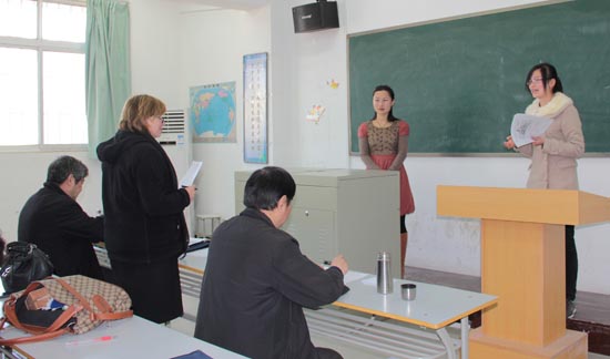 本站讯:3月24日上午,全国英语口语技能大赛暨第八届全国高职高专实用英语大赛(河南赛区复赛)在我校举行。此次比赛由河南省高等学校外国语教学委员会专科大学英语分会主办、bat365在线官方网站承办。来自河南省的外语学科专家张克定、郭爱先、邱天和、牛保义及我校外籍教师Angela Leuck,Jan Draper为大赛担任评委。