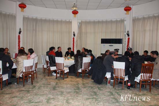 本站讯 1月22日,除夕之夜,爆竹齐鸣,喜气十足,年味浓浓,校内外到处洋溢着欢乐祥和的节日气氛。在合家欢聚之时,校领导莫华林、拜五四、储建新以及党政办公室、党委宣传部、学生工作部、保卫处、后勤服务中心和东京大道校区管委会等单位负责人与寒假期间在校的教职员工和留校学生在教职工餐厅共度佳节。