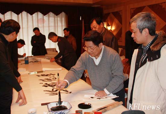 与会人员围绕协会组织建设、活动开展、服务地方经济等方面进行了深入的探讨和交流。会后,举行了新春联谊会,开封市书学研究会会长薛文法等多位书法家现场挥毫泼墨,为协会的蓬勃发展送上了新春的祝福。