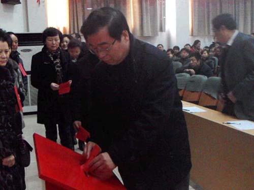 按照大会议程,万是明宣读了本选区人大代表正式代表候选人名单及简历,孙凤鸣宣读了区选举委员会制定的《金明区第二届人民代表大会代表选举办法(草案)》,范金梅宣读了总检票人、监票人名单和总计票人、计票人名单。大会以举手表决的方式通过了《选举办法(草案)》、总检票人、监票人名单和总计票人、计票人名单,工作人员当众检查票箱并上锁密封,储建新宣布大会到会选民合乎法定人数,可以进行选举,各位选民开始认真填写选票。随后,选民有秩序地投下了自己神圣的一票。