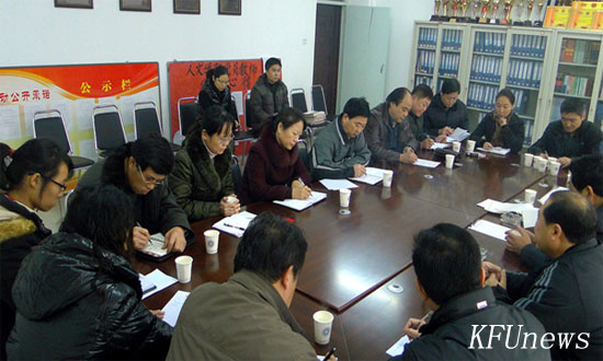本站讯 12月7日上午,校领导莫华林、拜五四、储建新、万是明、耿广利深入东京大道校区学生宿舍、学生食堂、教室等学生生活和学习场所走访调研,就管理存在的问题提出了指导性意见,特别要求在管理方面要以人为本、科学发展、责任到位,同时对辅导员进宿舍工作提出要求。随后,调研工作会在人文学院会议室召开,会议由校党委副书记储建新主持。