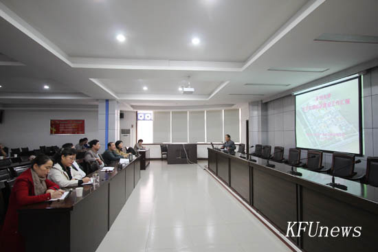 汇报会会上,建设指挥部副指挥长、基建处处长侯彦喜就东京大道校区建设进度的总体概况、用地情况、总体规划、近期建设计划、存在问题与建议等几个方面做了详细汇报。然后,两家设计院分别对行政办公楼、图书馆、机电学院实训楼、国际教育学院、继续教育学院楼等单体设计方案进行了详细介绍。