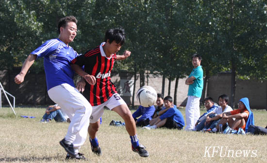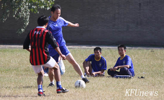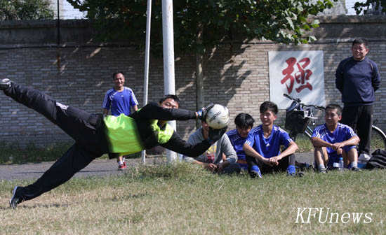 本站讯 为了在校园广泛开展阳光体育活动,让同学们积极参与体育锻炼,同时为2011级新生的大学生活开启一个良好的起点。10月17日中午,我校2011年“迎新杯”足球赛在足球场开赛。揭幕战由教工代表队与土木学院代表队之间进行友谊赛,依靠着下半时的两粒进球,最终教工代表队赢得了揭幕战的胜利。本次赛事将持续一个月。