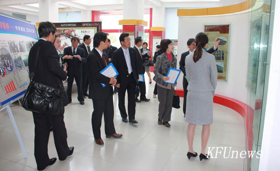 座谈结束后,代表团一行在耿广利及相关部门负责人的陪同下参观了校史馆、就业指导中心,并与外国语学院师生围绕环境问题进行了深入的座谈。
