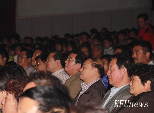 晚上,他的弟子们在金松大礼堂用诙谐幽默、精湛的技艺,向自己敬爱的老师献礼,杨先生也同台献艺,为我校师生献上了一场丰盛的语言艺术和舞台艺术俱佳的视听盛宴。市领导张家顺、席建国以及我校领导拜五四、储建新、万是明、李新春、耿广利和千余名师生观看了演出。