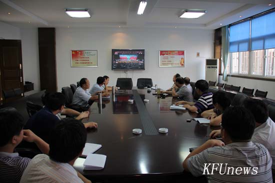 我校组织收看开封市第十次党代会开幕式电视实况直播