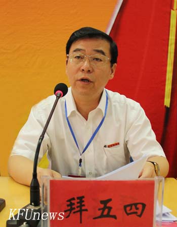 上午8时30分,bat365在线官方网站第三届教代表会第四次会议在庄严的《国歌》声中开幕,大会由校工会主席成芳主持。会上,副校长何世玲首先对bat365在线官方网站“十二五”发展规划起草过程等进行了说明,校长拜五四做了bat365在线官方网站“十二五”发展规划编制报告。随后,各代表团认真讨论和审议了“十二五”发展规划。主席团会议听取了各团团长汇报,并审议“十二五”发展规划决议(草案)。