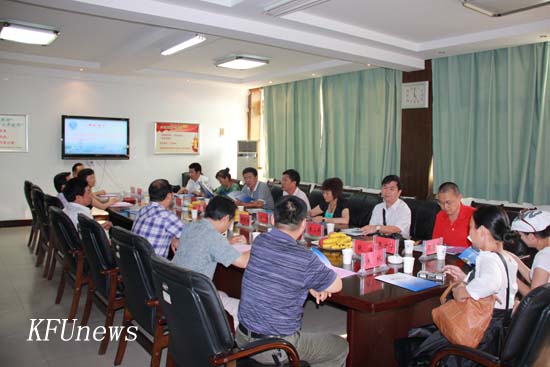 本站讯 7月27日下午,广东科学技术职业学院校长刘惠坚教授一行9人莅校考察,我校校领导莫华林、拜五四、储建新、赵辉在行政楼二楼会议室热情欢迎来访客人,党政办公室、招生就业处、实验实训中心、示范建设办公室及土木建筑工程学院等单位负责人参加了会谈。