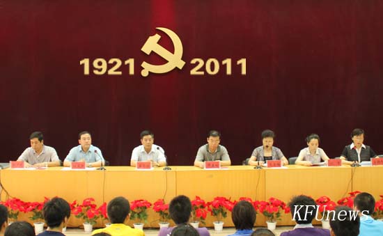 党委书记莫华林做了重要讲话,他首先代表学校党委向为学校的改革发展和党建工作付出辛勤劳动的全校广大党员和党务工作者致以节日的问候和衷心的感谢!向受到表彰的单位和同志们表示热烈的祝贺!之后,他带领全体党员再次感受了中国共产党90年的风雨历程和丰功伟绩,并对我校过去一年的党建工作进行了简要回顾,充分肯定了学校各级党组织以加强党的执政能力建设和先进性建设为主线,以改革创新的精神加强党的建设,以开展深入开展创先争优活动、推进学校基层党建工作为重点,紧紧围绕学校省级示范性高职院校创建这一中心工作,积极筹备和迎接省委组织部、省委高校工委、省教育厅党组对我校的党建工作评估,全面加强和改进党的建设所取得的成绩。