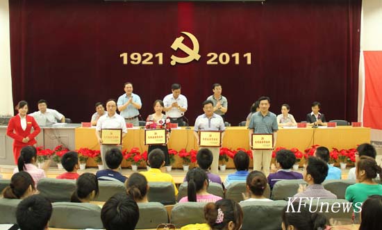 我校隆重举行纪念建党90周年表优暨新党员宣誓大会