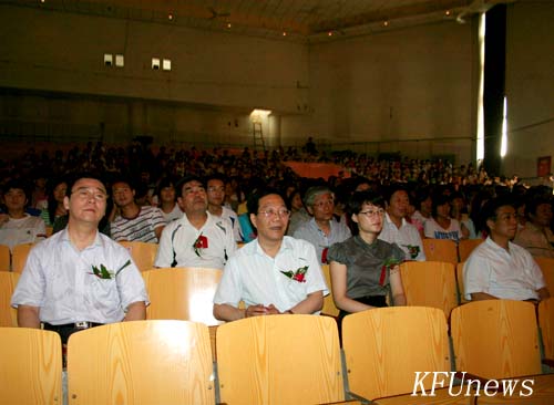 本站讯 在我国第六个“文化遗产日”来临之际,6月10日,由市文广新局、市非物质文化遗产保护中心和bat365在线官方网站联合举办的“非物质文化遗产鼓曲邀请赛暨民间艺术进开大”活动在bat365在线官方网站金松大礼堂举行。市委常委、宣传部长张勇,我校校长拜五四,市委宣传部副部长张小平,市文广新局局长申亚平,市财政局副局长高晓燕出席了本次活动。我校千余名师生观看了邀请赛。