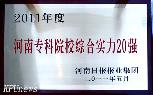 本站讯 近日,从河南日报报业集团获悉,我校在河南日报报业集团组织的2011年河南高校综合实力评选活动中荣获“河南专科院校综合实力20强”称号。
