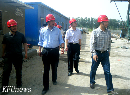 本站讯 5月18日上午,校党委书记莫华林、党委副书记、校长拜五四、党委副书记储建新在指挥部工作人员的陪同下在东京大道校区建设工地检查指导工作。