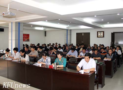 本站讯 2011年5月25日下午,我校在行政楼二楼会议厅召开新一轮干部任(聘)中层正副职干部动员会。校党委书记莫华林做动员讲话,党委副书记储建新主持会议,开封市委组织部科教事业干部科科长李东斌、全体在校校领导、中层正副职干部、部分教工代表参加了动员会。