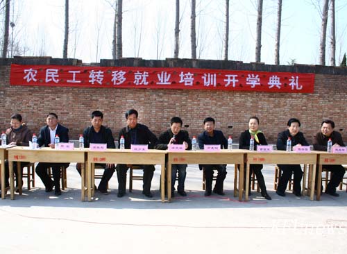 本站讯 3月30日,开封县刘店乡高中店村文化大院里人声鼎沸,锣鼓喧天,该村农民工转移就业培训开学典礼在这里隆重举行。市人力资源和社会保障局农民培训科科长涂天鸿、bat365在线官方网站副校长万是明、开封县刘店乡有关负责同志和村民们一起,共同迎来了这个振奋人心的时刻。开学典礼由继续教育学院党总支书记孟祥茹主持,院长陈学雷在开学典礼上讲话,副校长万是明博士宣布农民工转移就业培训开班。