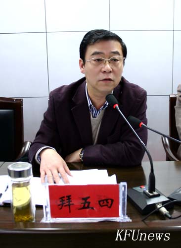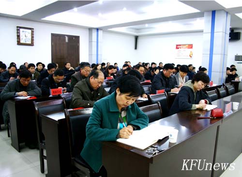 本站讯 2011年4月2日下午,我校在行政楼二楼会议厅再次召开了迎接河南省普通高校党建评估动员会,学校党政领导对迎评促建工作进行全面动员部署。党委书记莫华林作动员报告,党委副书记、校长拜五四主持会议。党委副书记、副校长储建新、副校长万是明在主席台就坐,其他党政领导出席会议。学校中层副职以上党员领导干部参加了会议。