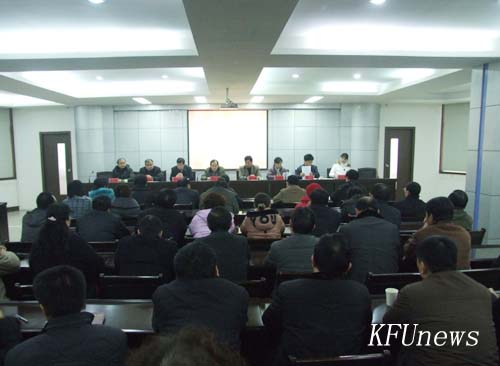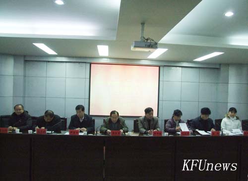 本站讯 2011年1月23日下午,bat365在线官方网站市管干部2010年年度考核民主测评会在我校行政楼二楼会议厅举行。市委干监室主任、市第10考核组组长王学军一行6人到我校进行市管干部年度考核。校领导班子成员、中层正职干部和正教授参加会议,会议由校党委书记莫华林主持。