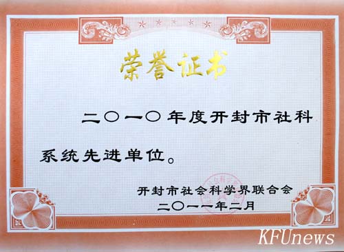 本站讯 近日,从开封市社会科学界联合会获悉,我校被评为“2010年度开封市社科系统先进单位。