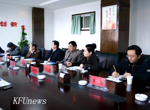 本站讯 2011年3月3日下午,开封市外事侨务办公室主任刘威、副主任韩升良、涉外管理科科长陈雷一行3人莅临我校就学校外事交流、国际教育合作等事宜进行考察调研。校党委书记莫华林、校长拜五四,党政办、国际教育学院负责人参加会谈。