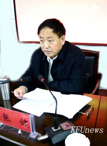 大会由郑西乾主持。省委第二考核组组长张健首先讲话。讲话中阐述了开展省管领导干部考核的必要性。他指出:开展高校领导干部年度考核,是提高领导干部素质的具体措施,也是客观公正评价干部的重要方式。中央对建立促进科学发展的干部考核评价机制工作高度重视,先后作出过一系列重大部署。搞好干部年度考核,对于落实好中央精神和省委要求,完善促进科学发展的高校干部考核评价机制,不断深化干部人事制度改革,推动学校的持续健康快速发展,有着重要意义。他还就考核主要内容、工作程序和相关要求进行了说明,调三点要求,一要高度重视、慎重对待。希望大家一定要从讲政治、讲党性的高度,从促进学校改革发展稳定的高度,慎重对待这次考核,共同搞好这次考核和民主测评工作。二要要实事求是、客观公正,以高度负责的精神,正确评价领导干部。三要要严守党的纪律、从严要求,决不能搞非组织活动或散布不负责任的言论,干扰年度考核工作。要通过考核测评,真正测出风格,测出境界,测出团结,测出形象。