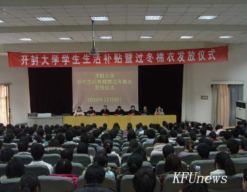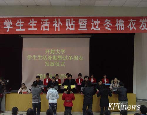 随后,校领导为2590名家庭贫困学生发放了生活补贴,并为542名学生发放了过冬棉衣。
